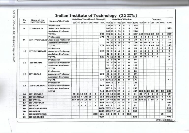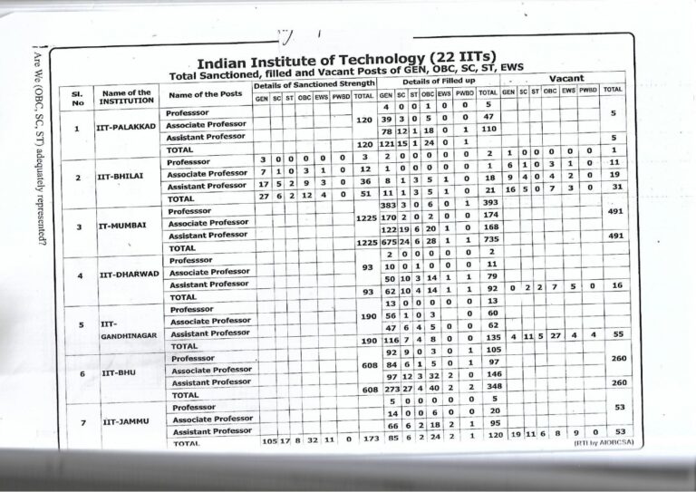 - அனுமதிக்கப்பட்ட, நிரப்பப்பட்ட மற்றும் காலியாக உள்ள பதவிகள் குறித்த தரவு, OBC, SC, ST and EWS
