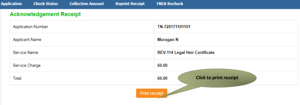 After confirming the payment, an acknowledgment receipt will be displayed. To obtain a copy of the receipt, click on ‘Print Receipt’ for downloading or printing.