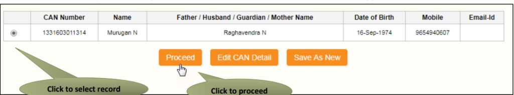 Step 1: Choose the record by clicking on the option button next to the desired entry.