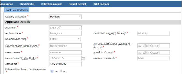 A legal heir certificate, issued by the government, is for individuals whose parent or spouse has passed away without a will. It is used to establish relationships for claims related to insurance, pension, retirement benefits, or service benefits from central and state government departments, government undertakings, etc. This certificate can be applied in the e-Sevai Tamil Nadu portal and the Certificate can be obtained from Tahsildar / Deputy Tahsildar in their Taluk.