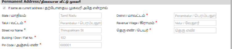The form automatically fills in the applicant’s details, and editing is not possible.